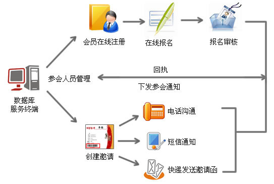 2、由会务组人员创建邀请,并发送邀请函(其方式包括:电话及传真、短信及E-mail或快递邀请函);